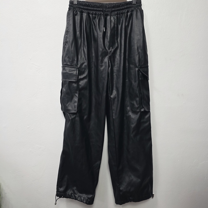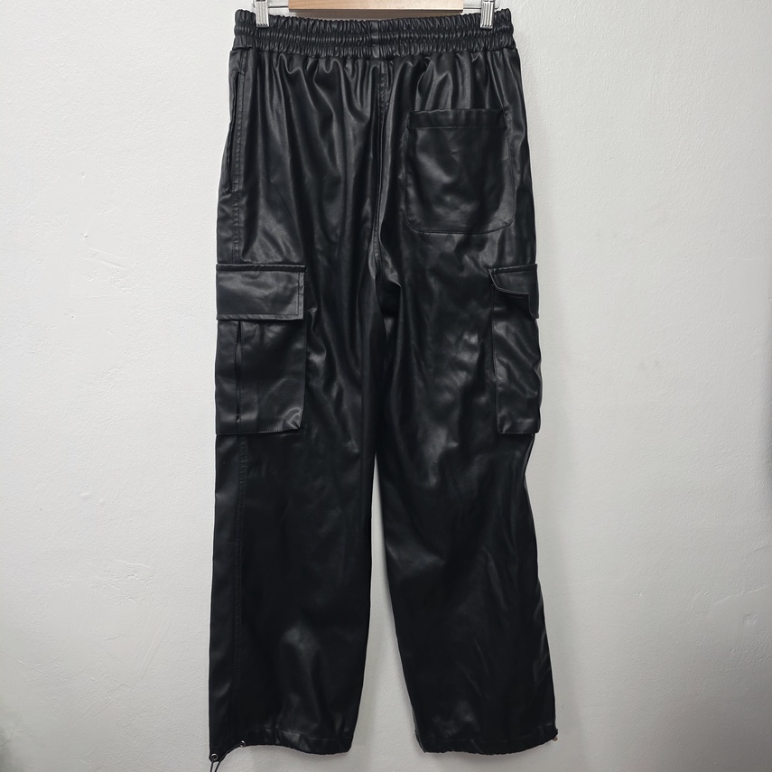 [vintage] 공용 비건레더 와이드 카고팬츠 L