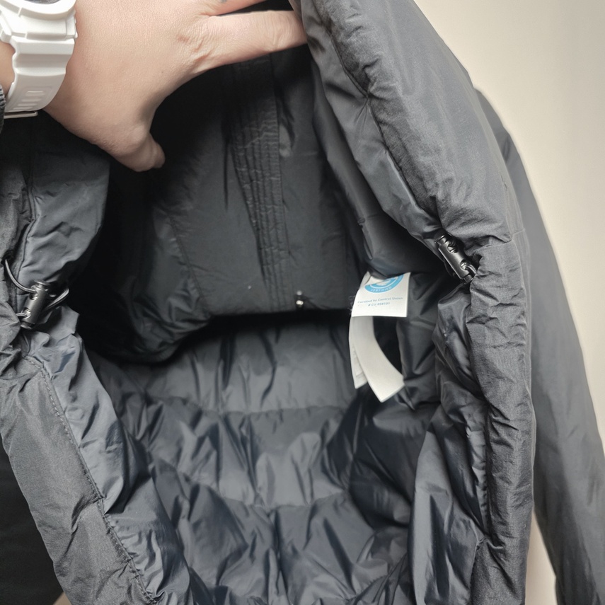 충전제 거위털, 목깃에 접이식 모자있습니다