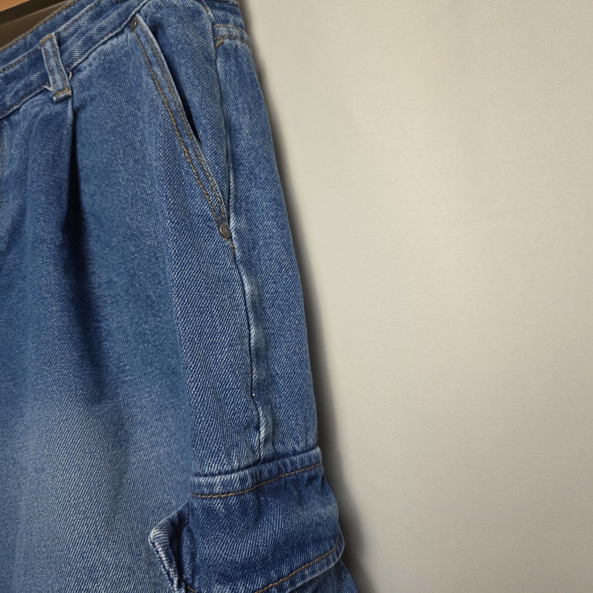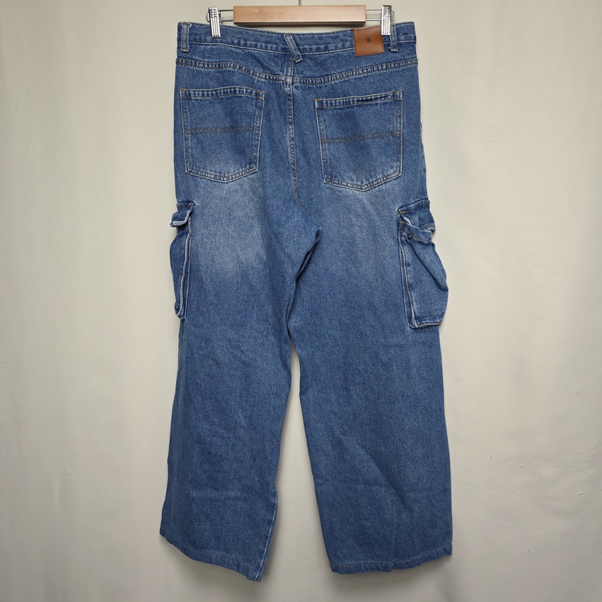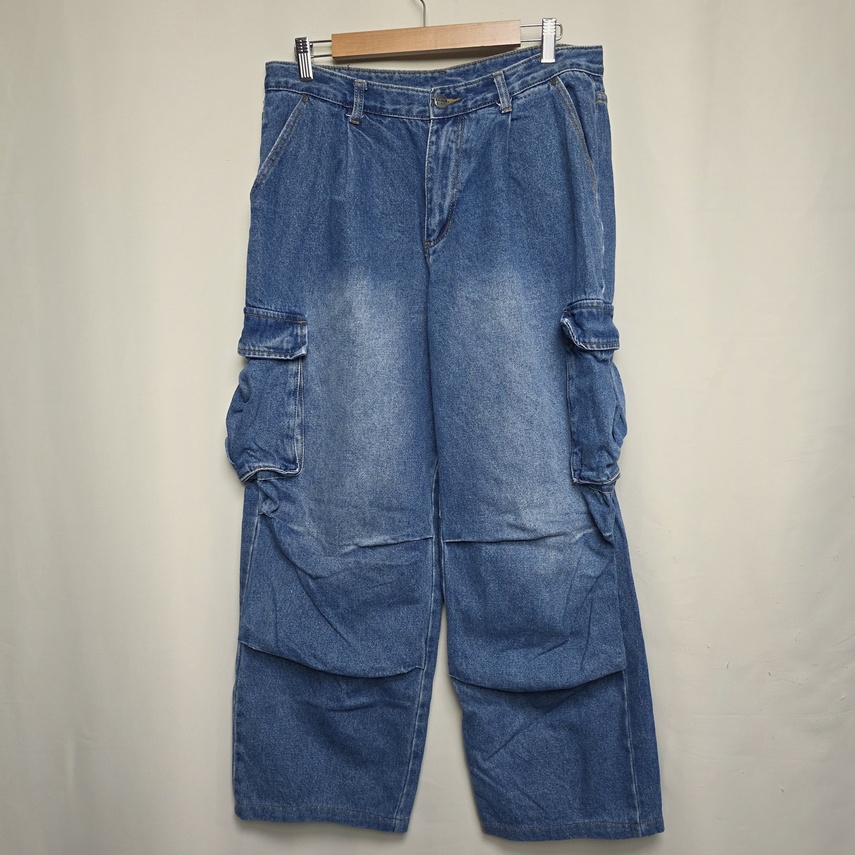 [vintage] 남성 와이드 투턱 카고 데님팬츠 32